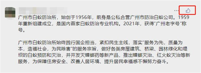 2021年,“广州市白蚁防治所”品牌获“广州老字号”荣誉称号。