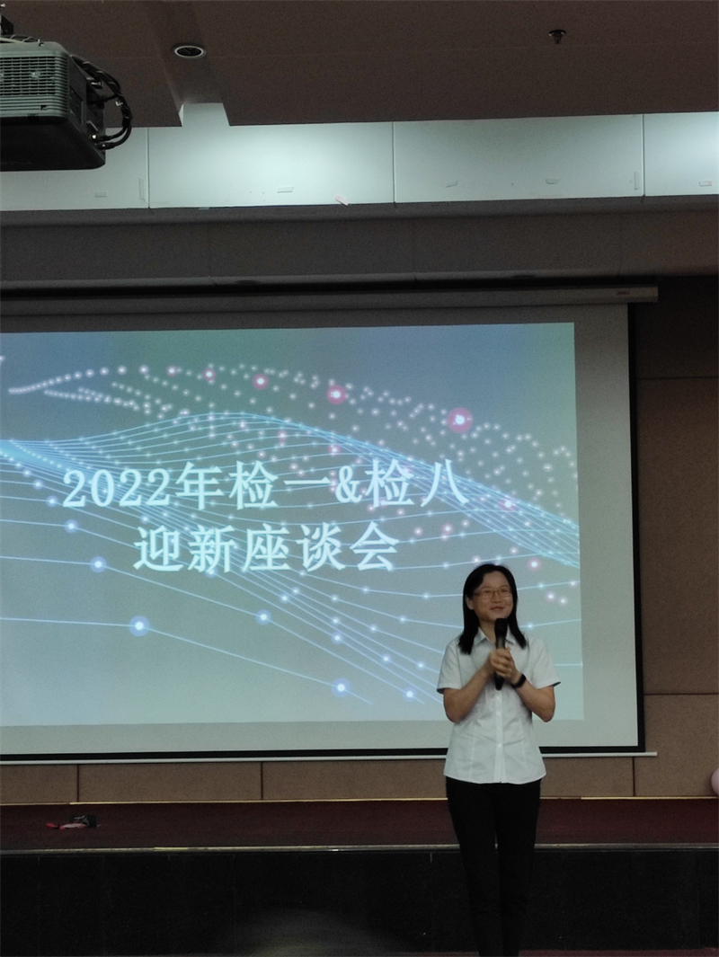 活动开始,检验一部部长戈强胜和检验八部部长李小红分别介绍了各自部门的岗位职责、部门风采、学习培训和成长激励等方面的内容,带领新员工全面了解部门工作、感受部门氛围;希望他们在所在岗位上发光发热、有所收获,并勉励新员工乘风破浪、携手奋进。