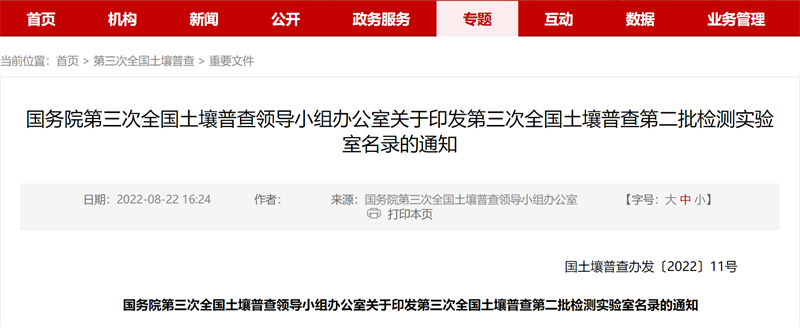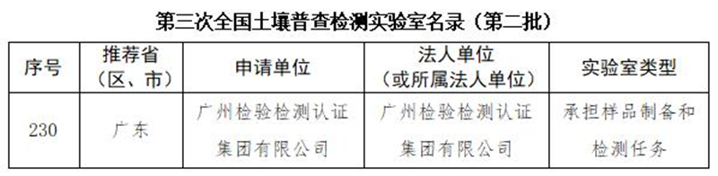 近日,国务院第三次全国土壤普查领导小组办公室公布第三次全国土壤普查第二批检测实验室名录,广州检验检测认证集团有限公司成功入选。