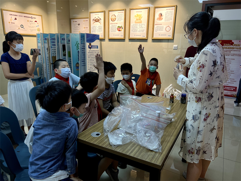 参观食品安全科普站,通过现场讲解,让他们对食品安全知识有了更加深刻、更加全面的了解。