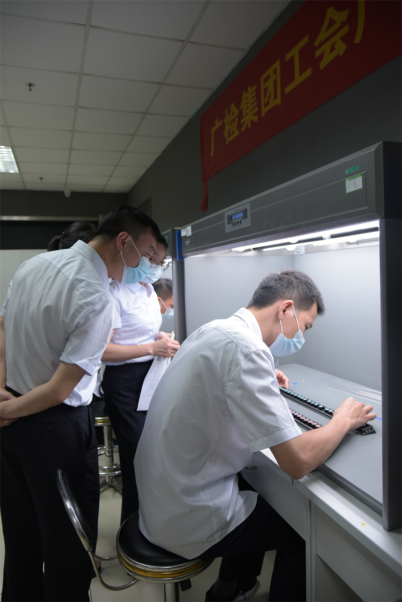 为深入贯彻落实广检集团工会关于组织开展2022年劳动技能竞赛活动的通知精神,将技能比武和生产实际结合,大力弘扬“工匠精神”,鼓励一线员工在技术领域大胆探索创新,激发重知识、学技能的工作热情,广检集团广纺院检验四部于8月18日开展2022年色牢度检验技能大比武活动。广纺院临时纪委书记汪朝红、广纺院副院长王向钦出席了本次活动。
