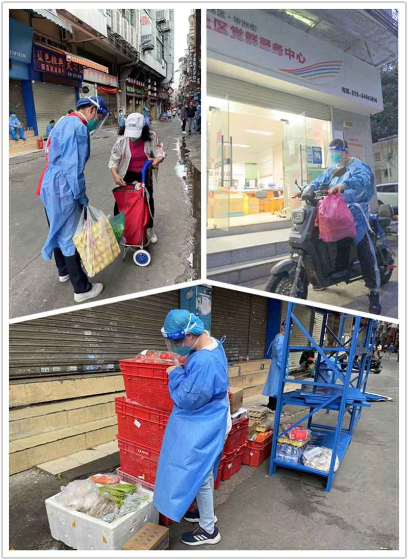 在华洲街指挥部支援物资派发现场,防疫物资和生活物资整齐码放,“质量卫士”突击队员们穿上红马甲、带上红袖章,做好防护措施,入户排查、派送物资,他们繁忙穿梭在街巷中,用一份份温暖之“举”凝聚起与海珠区并肩战“疫”、守望相助的强大力量。