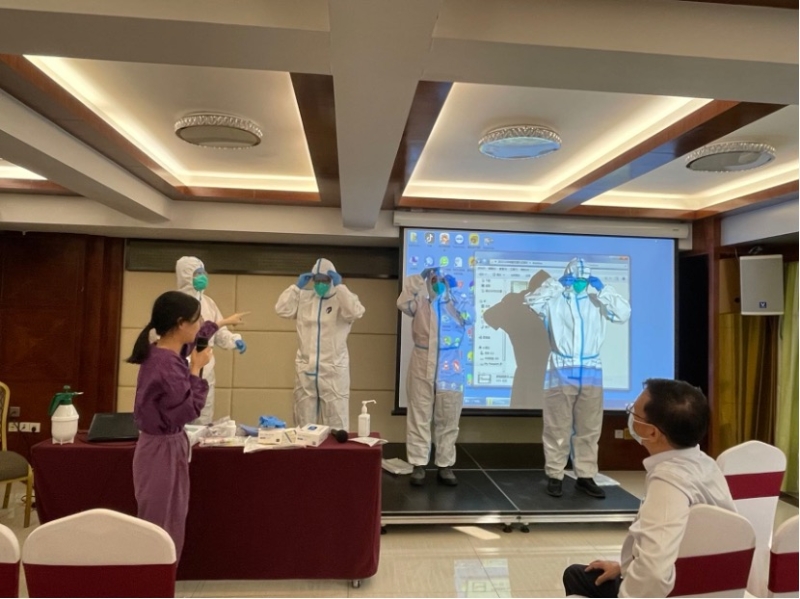 统筹协调 合力推进。支援服务队伍到达海珠区华洲街道龙潭村后立即与街道社区对接疫情防控任务,进一步明确队伍职责,将8支分队划分为网格组、溯源转运组协助社区开展疫情防控相关工作,强化协同配合,增强队伍执行力。同时,再次安排队员进行安全培训,重点讲解了防护服穿脱要点,让队员依次进行实操,确保队员熟悉掌握防护服的正确穿脱流程,为疫情防控工作的顺利开展提供了安全保障。