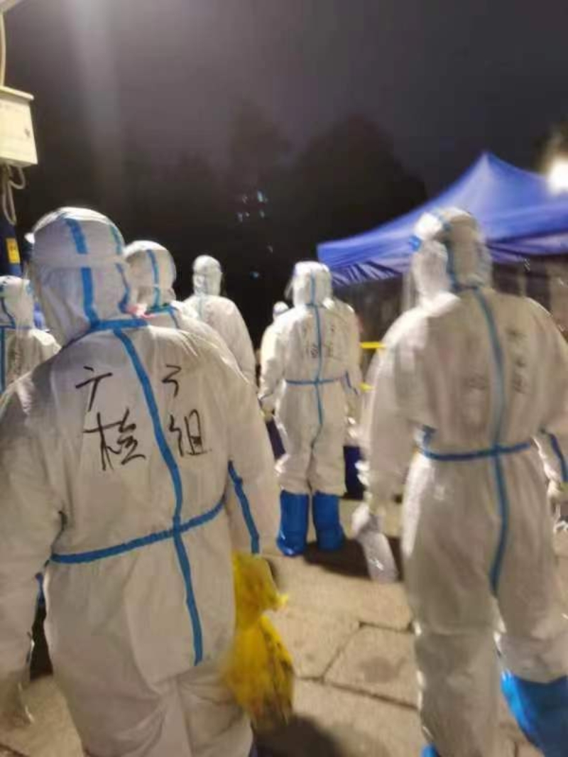 听令而行 火速支援。11日下午,广检集团支援服务队全面参与龙潭片区第三网格、第四网格疫情防控工作,队员火速投入,以饱满的精神状态执行扫楼、送药、居民信息排查等工作。从艳阳高照到繁星点点,广检集团的“大白们”仍在细心核查,确保不漏一户,不漏一人。当天下午到凌晨,广检集团志愿服务队排查70余栋居民楼,在排查过程中,广检集团广纺院创新先锋易宏提议通过信息化手段执行本次任务,以保障队员安全,易宏根据实际情况设计人员调查统计小程序,通过扫码登记的方式进行信息排查,加快工作效率,降低感染风险。11月11日,广检集团支援海珠龙潭片区疫情防控工作队完成700多户居民健康信息排查工作,用坚实有力的臂膀为抗击疫情筑起“金刚罩”。