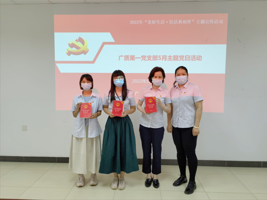 2022年5月是《中华人民共和国民法典》实施以来第二个“民法典宣传月”,为深入学习贯彻习近平总书记关于加强民法典学习宣传的重要指示批示精神,5月30日,广质第一党支部组织召开“美好生活·民法典相伴”主题党日活动,积极营造尊法、学法、守法、用法的浓厚氛围。