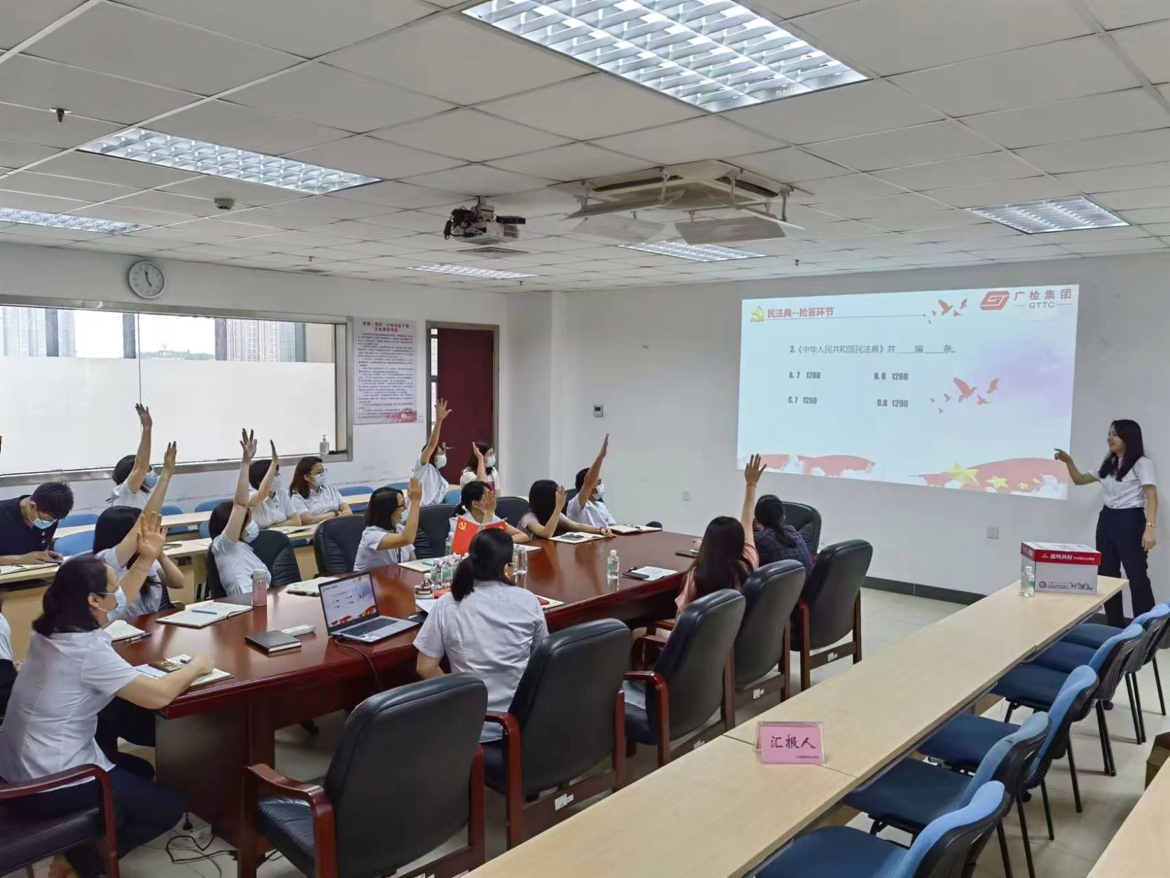 活动分为民法典视频观看和知识竞答两个环节。视频通过动漫方式从简介及总结编、物权编、合同编、人格权编、婚姻家庭编、继承权编、侵权责任编等七个编目来讲解《民法典》的主要内容,视频生动有趣,通俗易懂,让广大党员对《民法典》有了基本的认识和了解。紧接着,开展了民法典知识竞答活动,竞答题主要围绕《民法典》七编的视频容,活动采取积分制,以抢答形式来开展,广大党员踊跃举手,积极参与抢答,进一步巩固民法典学习成效,活动最后对积分前三名的党员发放了《中华人民共和国民法典》书籍。