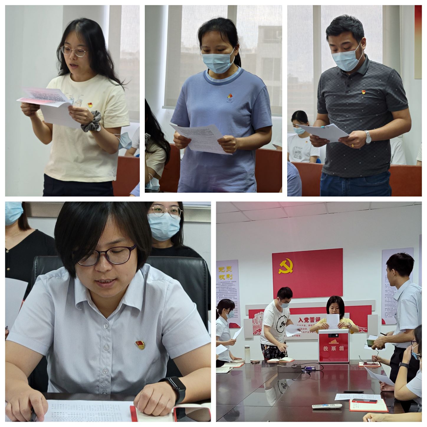 接着,李小红介绍了党支部上半年的党员发展工作,并严格按照发展党员程序逐一讨论及表决李诗洁、陈琼娟、罗隐3位同志预备党员转正的工作。会上,3名预备党员分别汇报了近一年的思想、工作情况,经支委会介绍、党员讨论、预备党员表态以及党员投票表决,最终一致同意了李诗洁、陈琼娟、罗隐3位同志预备党员按期转正。