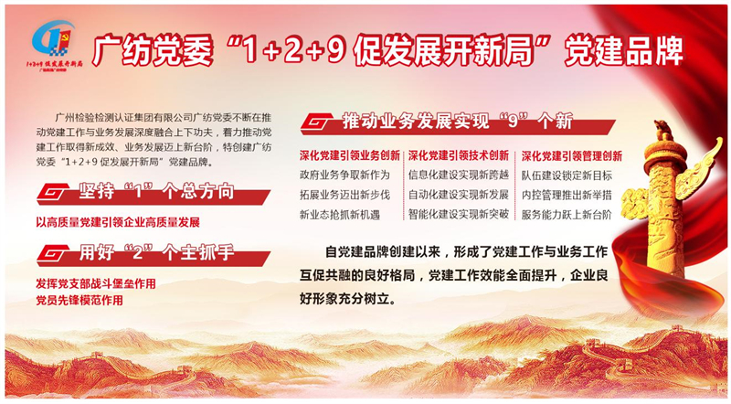 广检集团广纺党委积极探索党建与业务融合新路径,2021年7月在全集团率先创建“1+2+9 促发展开新局”党建品牌,始终坚持以高质量党建引领企业高质量发展“1个总方向”,保证党建品牌建设不偏航。用好党支部和党员“2个主抓手”,党建品牌建设通过党建引领企业发展的业务创新、技术创新、管理创新“3大板块”、“9个领域”、42项业务工作创新高效开展,切实激发党建工作效能,推动广纺党建出新出彩,助力集团实现改革创新高质量发展。